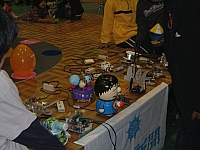 競技前の最終調整。個性的なロボットが集まりました。