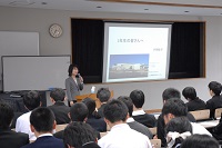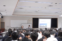 今回の講演では、①社会人に必要なもの、②学生時代にやるべきことの二つ観点から貴重なアドバイスをいただきました。1年生の皆さんには、将来を計画する際、今回の講話の内容を是非参考にして欲しいと思います。