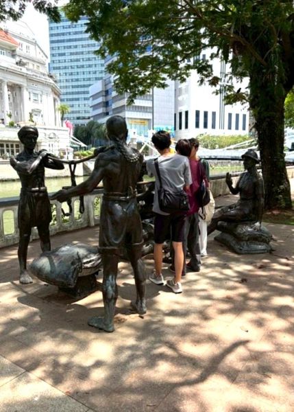 昼食後はマーライオンパークに行きました。シンガポールの中でもとても有名なマーライオンを見ることができ、とても感動しました。集合写真やマーライオンの水を飲むポーズの写真を撮り、楽しむことができました。その後はお土産を買いに行きました。ラッフルズ・ホテルや観光地として有名なオーチャード・ロードに行き、現地のお菓子や雑貨などを買いました。
