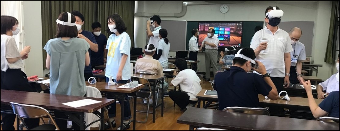 2022年8月29日に山口総合支援学校にて,8月30日に岩国総合支援学校にてVR研修会を合計約130名の教職員を対象に実施しました。